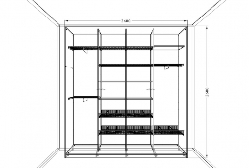 1. на основе гардеробной системы ARISTO – сетчатые стальные полки и корзины;