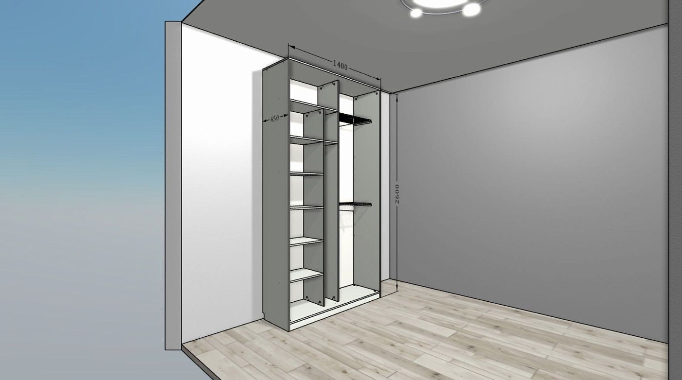 Шкаф и наполнение к нему создаётся индивидуально под каждый проект и с учётом особенностей помещения. Шаг изготовления изделий всего 1 мм!