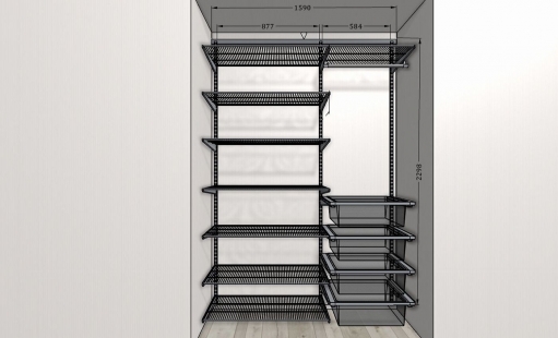 1. на основе гардеробной системы ARISTO – сетчатые стальные полки и корзины;
