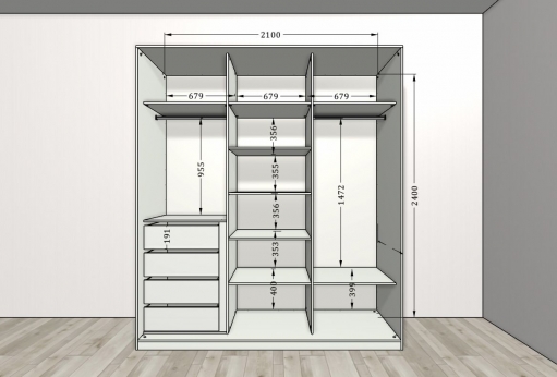 Шкаф и наполнение к нему создаётся индивидуально под каждый проект и с учётом особенностей помещения. Шаг изготовления изделий всего 1 мм!